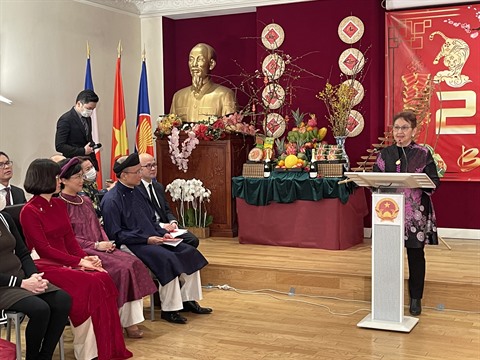 Partageant avec les difficultés que les Viêt kiêu doivent affronter dans la lutte contre le Covid-19, l'ambassadeur a également exprimé sa fierté de voir la bonne intégration de la communauté vietnamienne en France tout en préservant son identité culturelle et ses traditions nationales. L'ambassadeur a particulièrement apprécié l'esprit de solidarité, qui s'est clairement manifesté à travers le mouvement de soutien à la lutte contre le Covid-19 au Vietnam l'année dernière. On peut citer par exemple la campagne "10.000 doses de vaccin pour le Vietnam" lancée par l'UGVF avec la participation de nombreuses associations ; la mobilisation de l'Association globale des scientifiques et experts du Vietnam dans la recherche des sources de vaccins et l'équipement médical ; l’appui sanitaire de la Fédération Santé France-Viet Nam… À la veille du Nouvel An du Tigre, l’ambassadeur a adressé à toute la communauté vietnamienne ses meilleurs vœux de santé, de réussite et de prospérité. "Le Tigre d’eau est sensible et intuitif. Il agit avec prudence et nous invite à faire preuve de sagesse et de souplesse. Que toutes ces qualités nous accompagnent dans le courant de 2022 pour relever tous les défis et obtenir tous nos objectifs professionnels et personnels", a-t-il conclut.