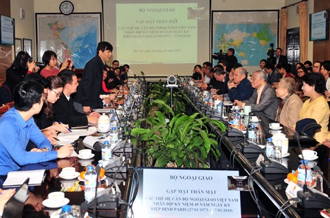| Des participant à la rencontre en l’honneur du 45e anniversaire de la signature des accords de Paris, le 25 janvier à Hanoï. |