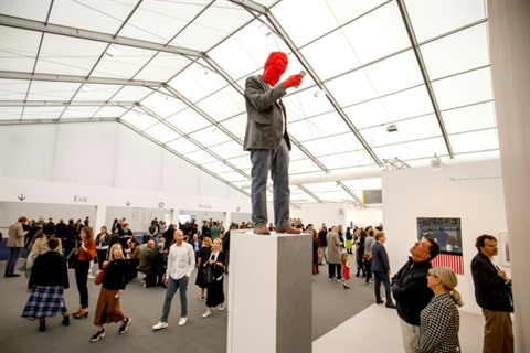 | Les visiteurs à la Foire d'art contemporain international Frieze de Londres regardent +Francesco+ par Urs Fischer lors d'une séance photos, le 3 octobre. |