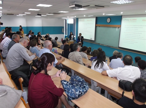 Les membres d'HEC Paris ont pu ainsi mieux comprendre la situation et les résultats positifs de l’économie vietnamienne lors de ces dernières années grâce aux présentations de Drobniak, représentant de la mission économique de l’ambassade de France au Vietnam, et de Gillabert, de l'Organisation des Nations unies pour le développement industriel au Vietnam. Drobniak a présenté rapidement la coopération économique entre les deux pays avant de répondre aux questions des alumni d’HEC Paris sur les secteurs ayant besoin d’investissements actuellement.