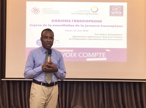 | Chékou Oussouman, représentant régional pour l'Asie et le Paficique de l'OIF, lors de l'événement, le 3 juin à Hanoï. |
