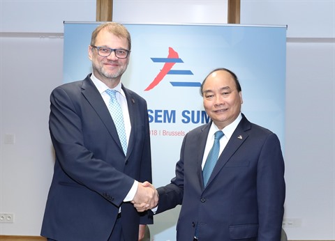 Rencontrant le Premier ministre finlandais Juha Sipila, le Premier ministre Nguyên Xuân Phuc a remercié le gouvernement et le peuple finlandais pour leur soutien et leur assistance au cours des dernières années. Les projets d'aide au développement finlandais ont contribué à l’amélioration de la qualité de vie des personnes et de la société au Vietnam. Le Premier ministre Nguyên Xuân Phuc souhaite que la Finlande continue à fournir de l'APD au Vietnam, contribuant ainsi à la réalisation du développement durable. Les deux parties ont également renforcé leur coopération en matière d'éducation et de formation dans le contexte des étudiants vietnamiens intéressés par l'apprentissage et la formation en Finlande.