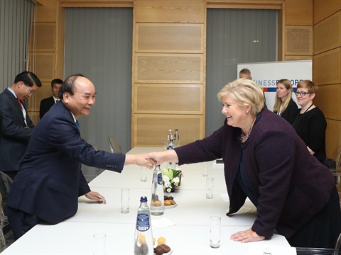 Lors de la rencontre avec le Premier ministre norvégien, Erna Solberg, les deux parties se sont félicitées de la bonne coopération entre les deux pays. Le Premier ministre Nguyên Xuân Phuc a déclaré que la Norvège était un partenaire important du Vietnam et s'attendait à ce que les entreprises norvégiennes renforcent leurs investissements au Vietnam pour atteindre les objectifs de développement durable des Nations unies d'ici 2030, notamment dans les domaines de la santé, de l'éducation, de l'approvisionnement en eau...