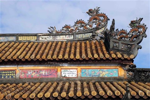 | Des dragons sur le toit du palais de Thai Hòa. |