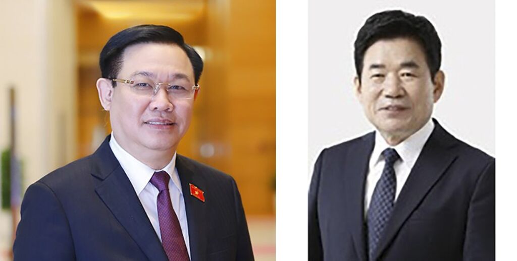 | Le président de l’Assemblée nationale du Vietnam, Vuong Dinh Huê (gauche), et son homologue sud-coréenne, Kim Jin-pyo. |