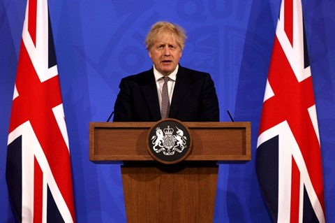 | Le Premier ministre britannique Boris Johnson lors d'une conférence sur la situaiton sanitaire le 10 mai à Londres. |