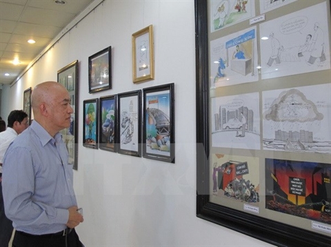 | Exposition des tableaux caricaturaux à Hô Chi Minh-Ville. |