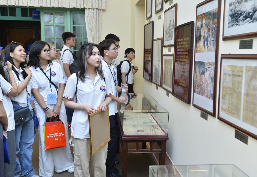 | Des jeunes Viêt kiêu visitent le musée du Front de la Patrie du Vietnam, à Hanoï. |