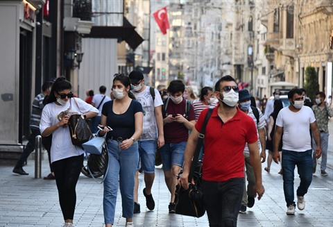 | Des gens portent des masques à Istanbul, en Turquie le 1er juillet. |