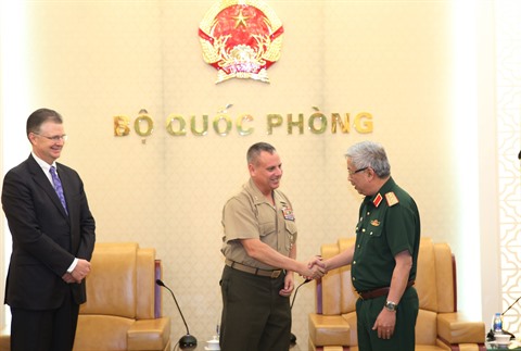 | Le général de corps d’armée et vice-ministre vietnamien de la Défense, Nguyên Chi Vinh (droite), a reçu, vendredi 27 septembre à Hanoi, une délégation du Commandement d'Indo-Pacifique des États-Unis |