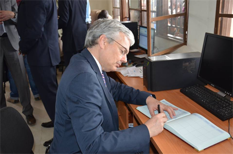 | Le vice-Premier ministre Didier Reynders à la rédaction du Bujumbura News au Burundi. |