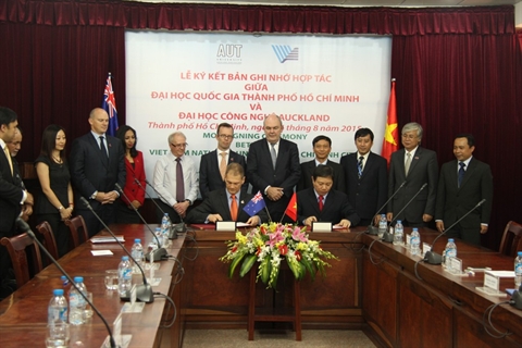| Signature d'un protocole de coopération entre l’Université nationale de Hô Chi Minh-Ville et l’Université des Technologies de la Nouvelle-Zélande (AUT), le 6 août à Hô Chi Minh-Ville. |