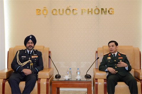 | Le général de corps d'armée Phan Van Giang (droite), chef d'état-major général de l'Armée populaire du Vietnam et vice-ministre de la Défense, a reçu le 1er novembre à Hanoi l'Air Chief Marshal Birender Singh Dhanoa, chef de la force aérienne indienne. |