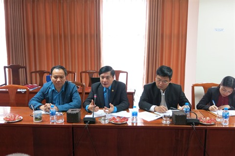 | Bùi Van Cuong (2e à gauche) lors d'une séance de travail avec la délégation de l'ambassade de Belgique, le 26 mars à Hanoï. |