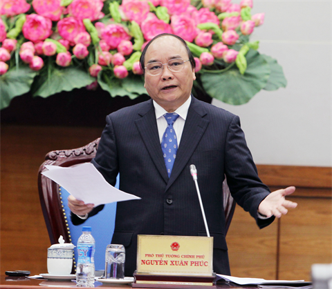 | Le vice-Premier ministre Nguyên Xuân Phuc lors d'une vidéo-conférence sur le renforcement de la lutte contre la contrebande en 2015, le 29 janvier à Hanoi |