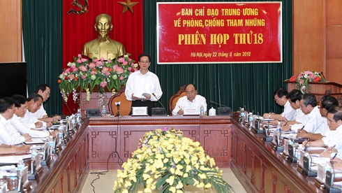 | Le Premier ministre Nguyên Tân Dung (debout) lors de la 18e session du Comité central de pilotage de prévention et de lutte contre la corruption, le 22 août à Hanoi |