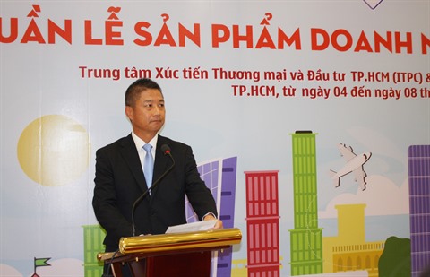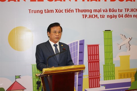 | Nguyên Huu Tin, directeur de l'ITPC, prononçant le discours d'ouverture de l’événement, le 4 novembre au centre commercial AEON - Tân Phu Celadon. |