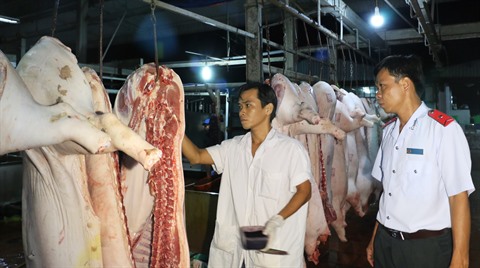 | Contrôler strictement la qualité de la viande de porcs avant d'être vendue sur le marché. |