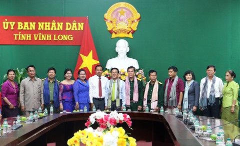 | Une délégation de la province cambodgienne Kampong Speu dans la province de Vinh Long (Sud), le 18 janvier 2017. |