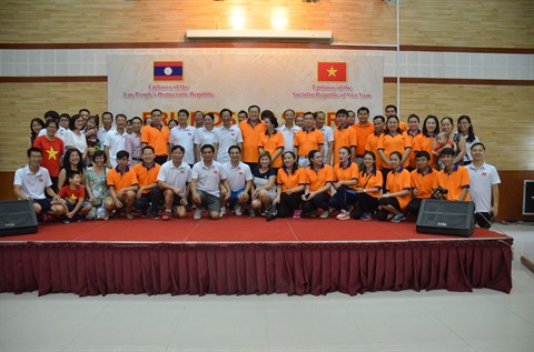 | Cadres et fonctionnaires des ambassades du Vietnam et du Laos au Cambodge lors du programme d'échange sportif. |