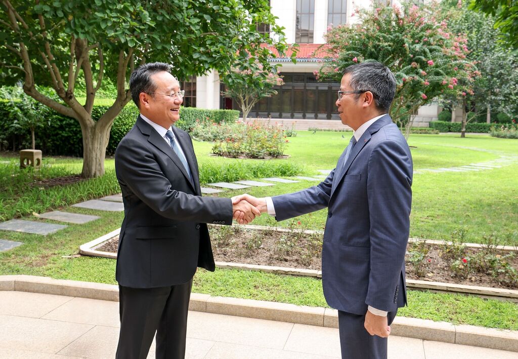 | Séance de travail entre l'ambassadeur du Vietnam en Chine, Pham Thanh Binh, et Wang Gang, chef adjoint du Département de l’information du Comité central du PCC. |