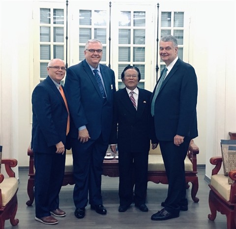 | Nguyên Tâm Chiên (2e à droite) et trois membres de l'organisation VFW, le 18 mars à Hanoï. |