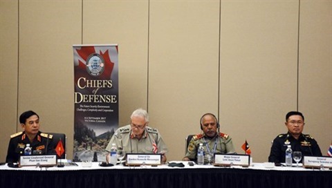 | Le général de corps d’armée Phan Van Giang (1er à gauche) à la 20e conférence des commandants de la défense d’Asie-Pacifique. |