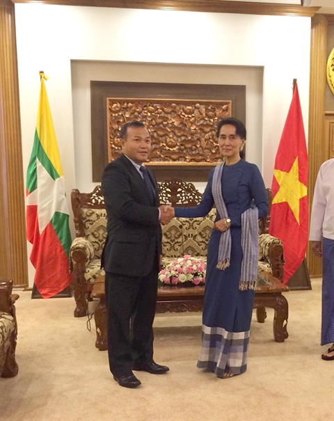 Le vice-ministre Vu Hông Nam a transmis à Aung San Suu Kyi l’invitation du vice-Premier ministre et ministre vietnamien des Affaires étrangères Pham Binh Minh à venir effectuer une visite officielle au Vietnam et à co-présider la 9e réunion du Comité mixte de coopération Vietnam - Myanmar.