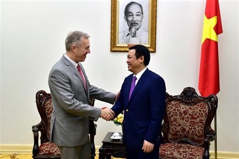 | Le vice-Premier ministre Vuong Dinh Huê (droite) et l'ambassadeur des États-Unis au Vietnam, Ted Osius. |