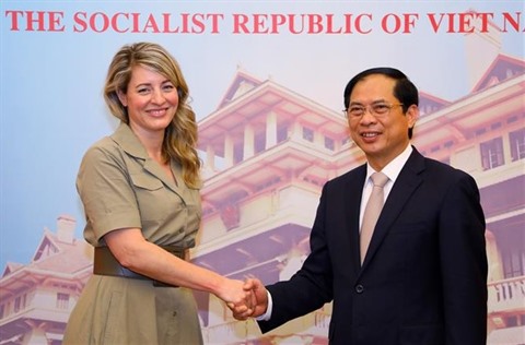 | Le ministre des Affaires étrangères, Bùi Thanh Son, et son homologue canadienne Mélanie Joly, |
