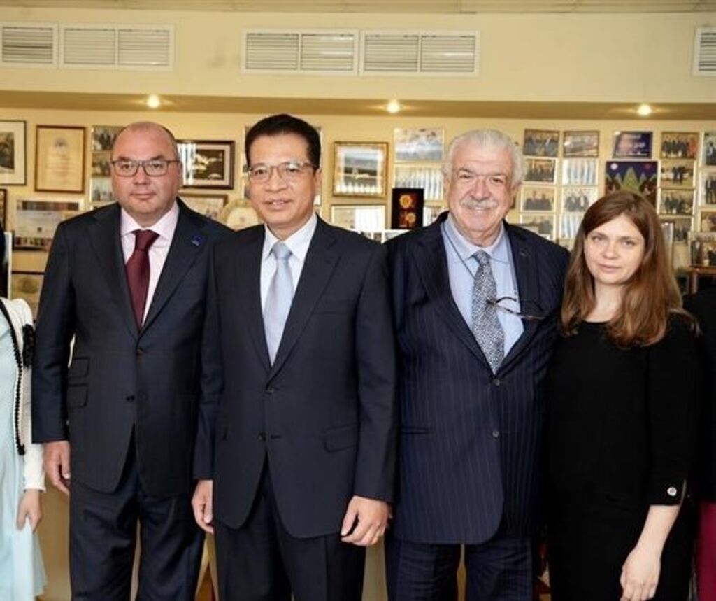 | L'ambassadeur du Vietnam en Russie, Dang Minh Khôi (2e à gauche) et des responsables de l'Agence de presse russe TASS, le 1er juin à Moscou. |