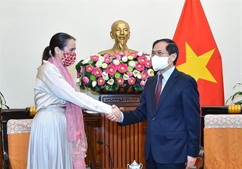 | Le ministre vietnamien des Affaires étrangères, Bùi Thanh Son, et la nouvelle ambassadrice de Nouvelle-Zélande au Vietnam, Tridene Dobson. |