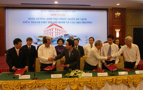 | Cérémonie de signature d’accords de coopération touristique entre Hô Chi Minh-Ville et des représentants d’autres localités. |