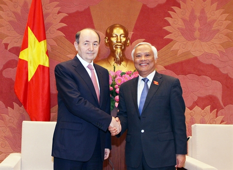 | Le vice-président de l’Assemblée nationale Uông Chu Luu (droite) et le ministre azerbaïdjanais de la Justice, Fikrat Mammadov |