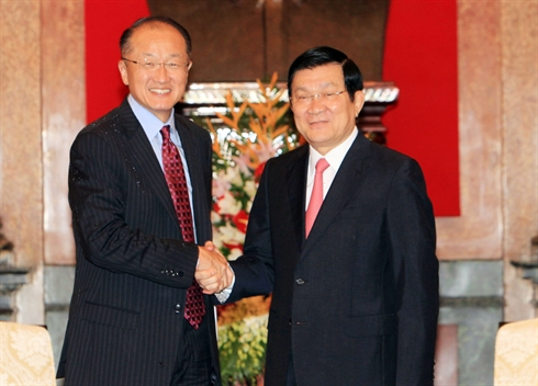 | Le président de la République, Truong Tân Sang (droite), et le président de la Banque mondiale, Jim Yong Kim, le 17 juillet à Hanoi. |