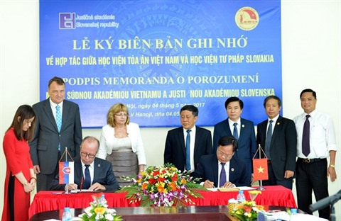 À cette occasion, le directeur de l’Académie judiciaire de la Slovaquie, Peter Hulla, et le directeur adjoint de l’Académie juridique du Vietnam, Trân Van Hà, ont signé un mémorandum de coopération bilatérale dans la justice. Aux termes de ce document, les deux parties ont décidé de multiplier les échanges de délégations, le partage d’expériences et les programme de formation en matière judiciaire.