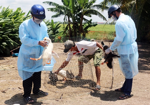 | Des vétérinaires de la province de Bac Liêu (Sud) examinent des volailles. |