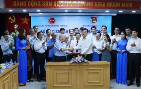 | Cérémonie de signature du programme de coopération entre l'Union de la jeunesse communiste Hô Chi Minh et l’Association d’amitié Vietnam-Cambodge, le 18 octobre à Hanoï. |