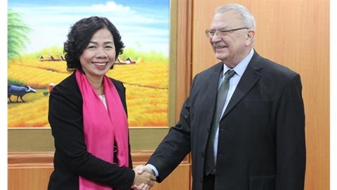 | La vice-ministre vietnamienne des Finances, Vu Thi Mai et Michael W. Michalak, vice-président de l’USABC. |