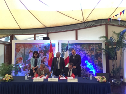 | Signature du mémorandum d’accord de coopération sur la présence de locuteurs de français natifs dans les établissements scolaires vietnamiens, le 18 mars à Hanoi. |