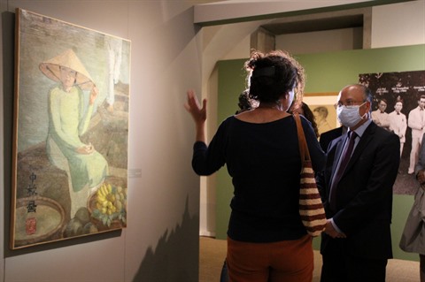 Dans le cadre de sa visite de travail en Saône-et-Loire, l'ambassadeur Dinh Toàn Thang a visité l'exposition "Mai-Thu, écho d'un Vietnam rêvé".