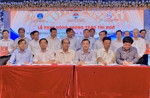 | Signature du programme de coopération entre des localités dans la lutte contre les catastrophes naturelles, le 15 juin à Hô Chi Minh-Ville. |
