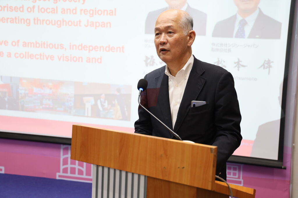 | Ikeda Norimasa, Pdg du groupe CGC Japan, prend la parole lors de la conférence. |