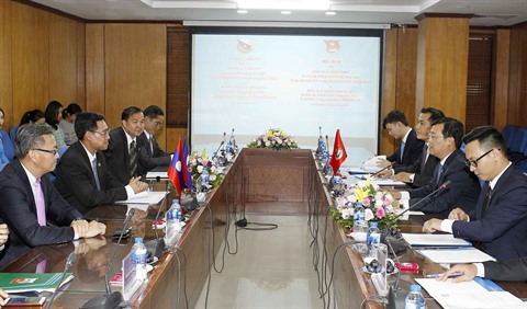 | Rencontre entre l’Union de la jeunesse communiste Hô Chi Minh et l’Union de la jeunesse populaire révolutionnaire du Laos, le 15 mai à Hanoï. |