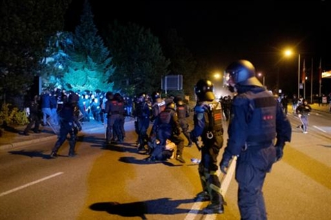 | Heurts entre la police et des manifestants à Heidenau, à l'Est de l'Allemagne, le 23 août. |