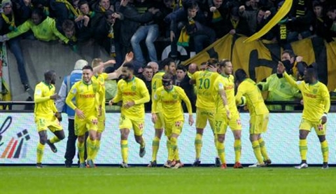 | Les joueurs nantais après l'égalisation face à Guingamp, le 16 janvier au Roudourou. |