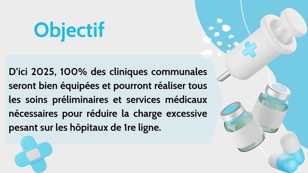 Avec son projet de "Renforcement de la formation et amélioration des aptitudes du corps médical dans les communes et quartiers pour la période 2019-2025", ledit ministère se focalise sur la consultation sanitaire scolaire et les services d’urgence au niveau provincial en amont de l’entrée du patient à l’hôpital.