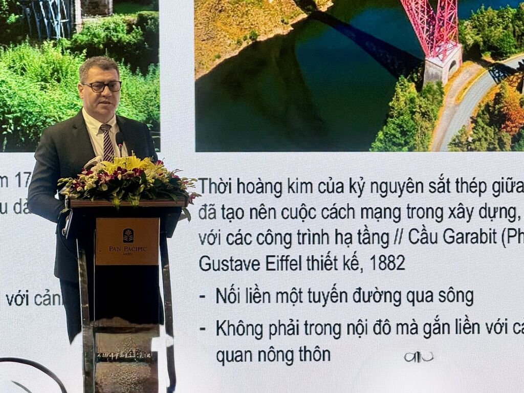 Lors de l'atelier, Emmanuel Cerise, directeur de PRX-Vietnam, a partagé son expérience sur la conservation des ponts métalliques en France. Selon lui, être classé au patrimoine ne signifie pas seulement "une protection à l'identique", cela représente aussi une opportunité de "redéfinir la fonction et de réintégrer l'ouvrage dans la vie urbaine".