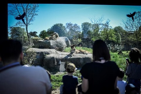 | Des visiteurs admirent des lions, en avril au zoo de Vincennes. |