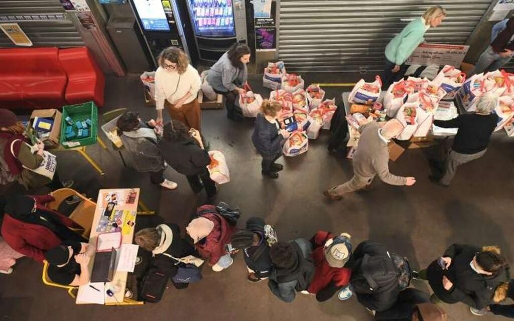 | Des étudiants font la queue à l'épicerie gratuite sur le campus de l'Université Rennes 2, le 13 mars. |